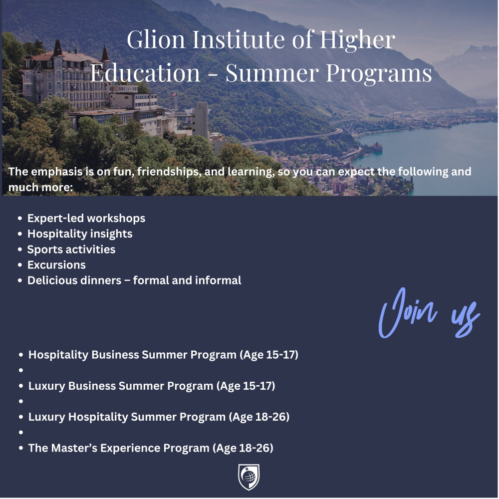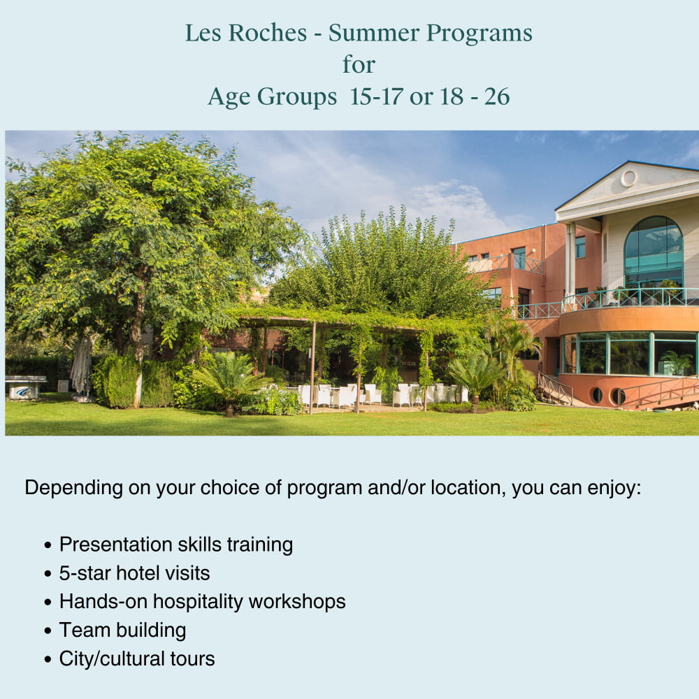Les Roches and Glion 1-week Summer Programs are ideal for students aged 15-17 years, interested in the Hospitality industry. The program offers activities, engaging events, and masterclasses, which will equip students with a hands-on approach and experience in Hospitality. Additionally, this is an equally exciting opportunity for those who are considering applying to either of the university’s bachelor’s programs.